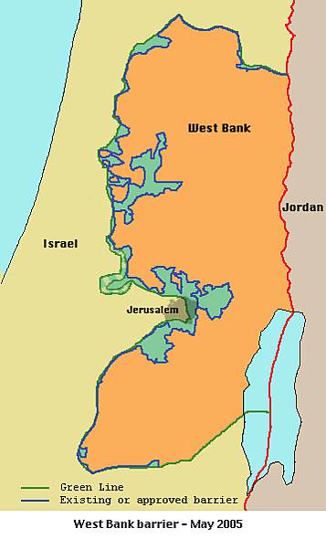 - На израильской стороне барьера остаётся более 10 % Западного берега р. Иордан (это на 600 км² больше, чем если бы граница проходила по зелёной черте 1967 года).