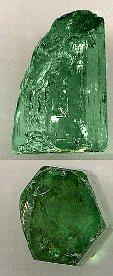 Изумруд является прозрачной разновидностью берилла, окрашенной в травянисто-зелёный цвет оксидом хрома или оксидом ванадия, иногда с примесью оксида железа (южноафриканские изумруды). Формула: Be3Al2Si6O18; твёрдость (Шкала Мооса) 7,5—8,0, плотность 2,68—2,78; преломление 1,566—1,600; двупреломление 0,005—0,009[3].