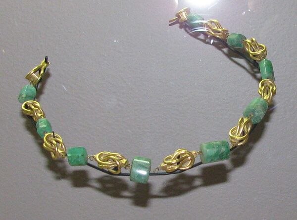 В древнеегипетской Книге Мёртвых было записано, что египтяне получили изумруд в дар от великого бога Тота. Зелёный цвет камня напоминает о весне, и он считался символом вечной юности. Египтяне называли изумруд «камнем богини Исиды» и приписывали ему способность превращать сны в явь, читать мысли, видеть прошлое и предвидеть будущее. Также считалось что изумруд награждал человека верностью и неизменной любовью. Данный камень был покровителем будущих матерей, он считался лучшим подарком для рожениц.[26] Изумруды также широко использовались в древнеегипетских ювелирных украшениях, и многие люди желали, чтобы их клали в их гробницы.