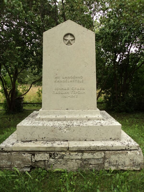 - В 1948 году на братской могиле павших во Второй мировой войне советских воинов ( с 1997 до 2022 года) был установлен обелиск из красного гранита (высота без основания 1,17 метра) с надписью «Вечная память героям-морякам торпедных катеров, погибшим в боях с немецкими захватчиками за свободу и независимость нашей Родины». В нижней части обелиска бронзовый барельеф, изображающий торпедный катер в волнах. На постаменте текст: «Лейтенант Броншпиц / главный старшина Карельский / старшина 1 статьи Клюкин / старшина 2 статьи Яшин / матрос Демидов»; ниже дата «1948». В 1965 году останки погибших моряков были перезахоронены перед бывшим домом Торгуской волостной управы (т. н. «Домом Булла»). В 2017 году памятник был перенесён в порт деревни Мынту, где также были перезахоронены останки погибших[14]. В протоколе от 30 ноября 2022 года рабочей группы по советским памятникам при Госканцелярии Эстонии данный памятник не упоминается[15].