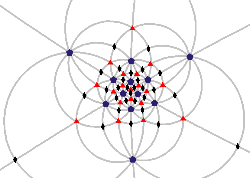 Эту геометрию и ассоциированную группу симметрии изучал Феликс Кляйн как группы монодромии поверхности Белого — римановы поверхности с голоморфным отображением в риманову сферу, разветвлённым в 0, 1 и бесконечности — каспы являются точками на бесконечности, в то время как вершины и центры каждого ребра лежат на 0 и 1. Степень накрытия (число листов) равно 5.