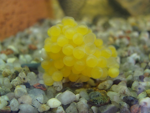 - Донная икра откладывается на дно. Донная нелипкая икра вымётывается на грунт, донная клейкая, или прилипающая, икра прикрепляется к кусочкам грунта (например, у мурманской сельди, мойвы), к камням или ракушкам (у осетровых, бычков и др.), к водным растениям (в частности, у плотвы, сазана)[2]. Некоторые рыбы икру зарывают в грунт[3].