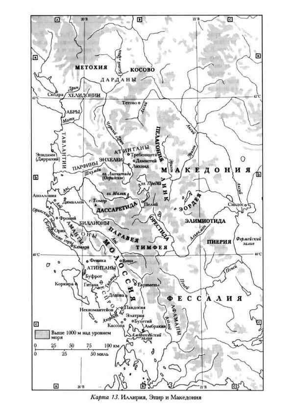 Внутри страны жили многочисленные полудикие разбойничьи племена иллирийцев, иногда соединявшиеся под предводительством племенных старшин и царей. Царь Иллирии Бардил вступил в борьбу с Филиппом Македонским, был побеждён и принуждён уступить большую часть своих владений. Царская власть, однако, сохранилась у его преемников, и Иллирийское царство вскоре, помимо части нового Эпира, стало включать в себя земли к северу от реки Дрина до островов Фара и Иссы.