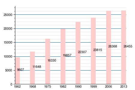 Население коммуны в 2009 году составляло 26 793 человек[7], в 2011 году — 26 467 человек[8], в 2012 году — 26 379 человек[9], а в 2013-м — 26 455 человек[5].