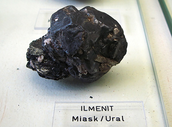Ильменит — титанистый железняк, минерал общей химической формулы FeO·TiO2 или FeTiO3 (36,8 % Fe, 31,6 % O, 31,6 % Ti), состав непостоянен. Ильменит был впервые описан в 1827 году А. Т. Купффером[2].