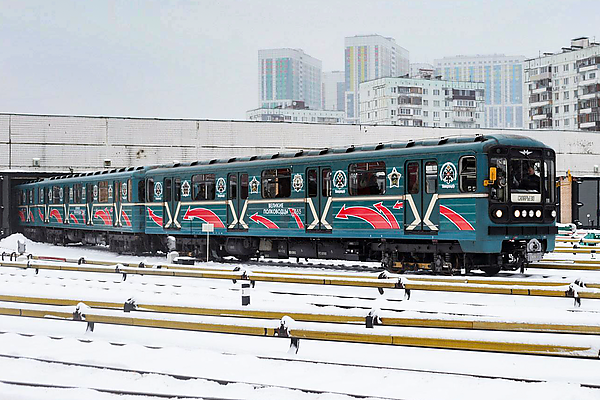 Запущен 8 мая 2003 года на Сокольнической линии в память о 60-летии Курской битвы. Появление этого поезда связано с участием в боях на Курской дуге бронепоезда «Московский метрополитен». Бронепоезд был построен на пожертвования работников метрополитена, его экипаж также составляли работники метро. 5—7 июля 1943 года экипаж бронепоезда вёл тяжёлые оборонительные бои. Бронепоезд был уничтожен на станции Сажное Юго-Восточной железной дороги[41]. Одновременно с запуском поезда в дар метрополитену была передана обнаруженная в Белгородской области картина «Последний бой бронепоезда „Московский метрополитен“».