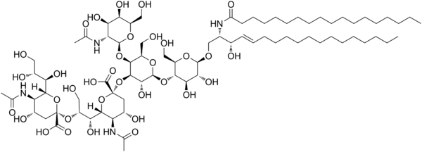 Углеводные антигены на поверхности клеток могут быть использованы в качестве мишеней для иммунотерапии. GD2 — это ганглиозид, обнаруженный на поверхности многих типов раковых клеток, включая нейробластома, ретинобластому, меланому, мелкоклеточный рак лёгких, опухоли головного мозга, остеосаркому, рабдомиосаркому, саркому Юинга, липосаркому, фибросаркому, лейомиосаркому и другие саркомы мягких тканей. Обычно он не экспрессируется на поверхности нормальных тканей, что делает его хорошей мишенью для иммунотерапии. По состоянию на 2014 год клинические испытания шли полным ходом.[88]