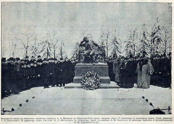 В 1900 году в Царском Селе был открыт бронзовый памятник А. С. Пушкину-лицеисту в Лицейском саду.