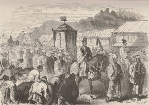 В начале 1860-х сёгунат оказался под угрозой. Иностранные державы стремились усилить своё влияние на Японию. Многие даймё оказались недовольны действиями бакуфу, ведущего дела с иностранцами, а многие молодые самураи, входящие в организацию «сиси» (или «люди высокой цели»), начали сговариваться против сёгуната. Они почитали императора Комэя и поддерживали прямые военные действия, способные избавить страну от социальных бед. Первоначально желающие смерти или изгнания всех иностранцев, сиси впоследствии стали более прагматичными и озаботились модернизацией страны[35]. Бакуфу принял ряд мер, направленных на усмирение нескольких групп, надеясь в конечном итоге столкнуть сиси и даймё между собой[36].