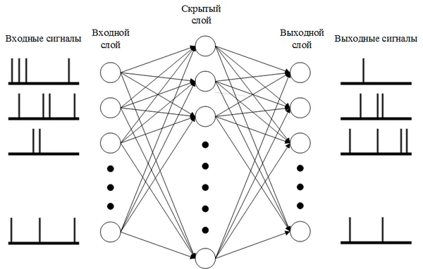 - пространственно-временной — информация задается не только определенной последовательностью импульсов во времени, но они еще и должны исходить от определенной группы нейронов;