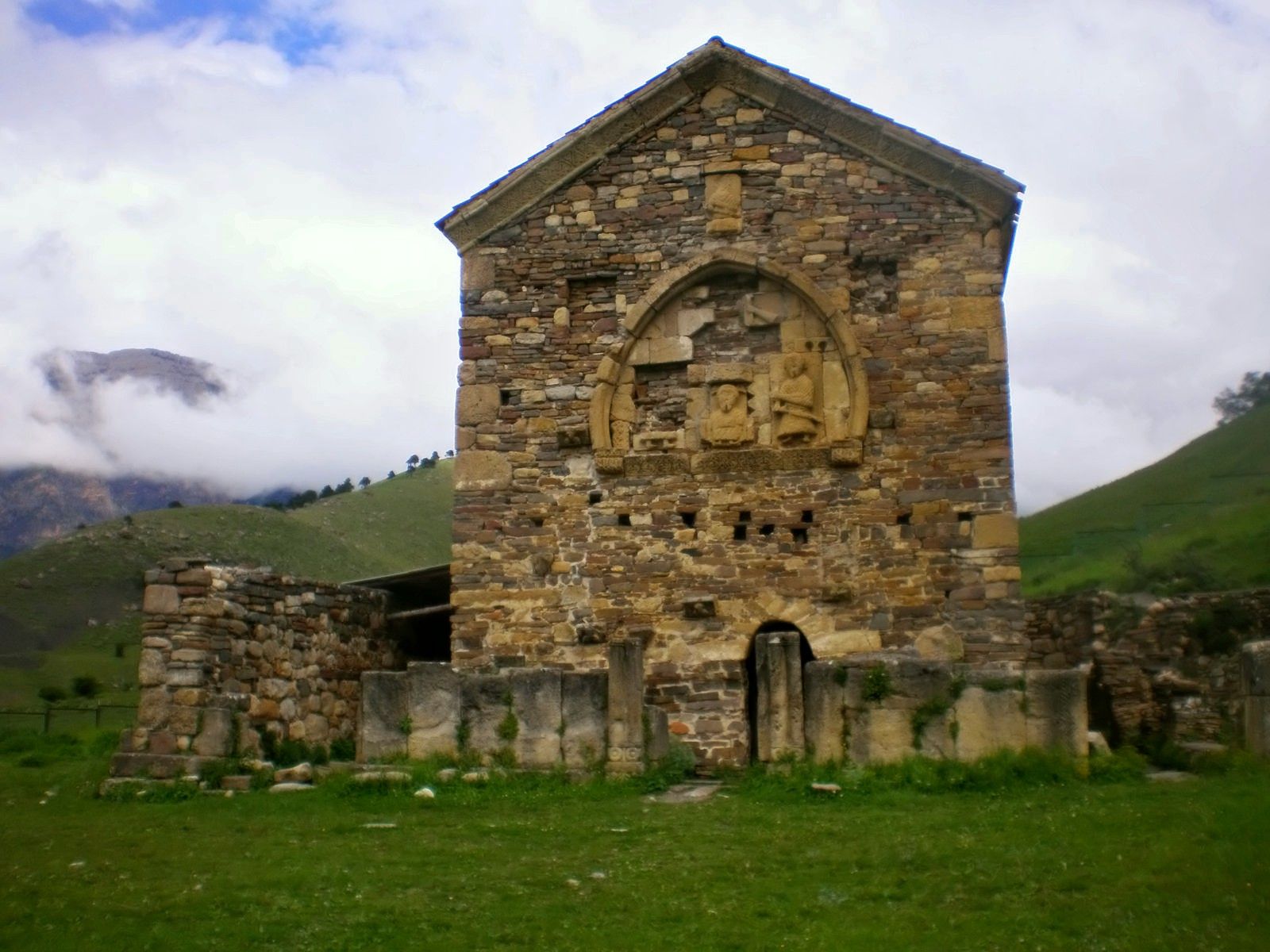 Первые христианские миссионеры, согласно трудам историка Башира Далгата[126], появились в Ингушетии приблизительно в X веке, одновременно с расцветом Грузии, и были грузинами[126]. Христианство распространялось в Ингушетии и Чечне достаточно широко[126], в настоящий момент на территории современных Чечни, Ингушетии и Северной Осетии существует множество археологических, исторических и архитектурных памятников, подтверждающих многовековое христианство среди ингушей в частности, и вайнахов в общем[126]. В исследовании учёного описываются многочисленные свидетельства историков и путешественников раннего и среднего Средневековья, согласно которым, на территории ингушских земель были построены церкви или даже, возможно, монастырь[126]. В частности, согласно свидетельствам российских немцев-учёных Иоганна Гюльденштедта и Петра-Симона Палласа, побывавших в Ингушетии в XVIII в., в церкви Тхаба-Ерды (образце архитектуры IX—X веков[127]) хранились древние документы, написанные, по словам их собеседника-монаха, «золотыми, голубыми и чёрными буквами», что над дверями храма есть надпись «готическими буквами»[126]. Энциклопедический словарь Брокгауза и Ефрона, издававшийся в конце XIX — начале XX веков, указывал о наличии среди ингушей христиан и язычников: