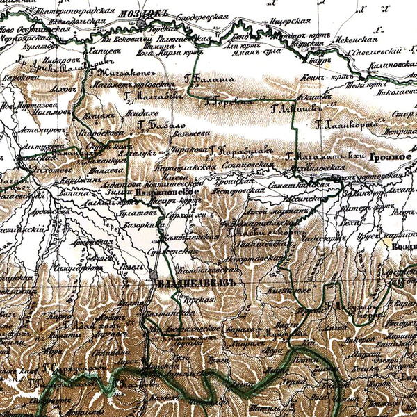 Междуречье Терека и Сунжи, через которое проходила дорога в Грузию, приобретает в этот период стратегическое значение для России. Эта территория была освоена ингушами не позднее конца XVII — начала XVIII века. Согласно данным И. А. Гюльденштедта[101] на берегах рек Сунжи и Камбилеевки было множество ингушских селений. Ангушт являлся центром округа, известного под названием «Большие Ингуши». Переселенцы из «Больших Ингушей» образовали новую колонию «Малые Ингуши», центром которой стало селение Шолхи[102]. В дальнейшем происходит продвижение ингушей к Назрановской долине[103].