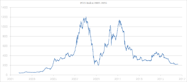 Дата 1 октября 1997 года является базовым периодом, с которого начинается расчёт индекса. Суть индекса — процент роста средневзвешенных цен акций «индексной корзины» по отношению к базовому периоду. По состоянию на август 2007 года индекс ПФТС имел значение в районе 1000. После мирового финансового кризиса в 2008 году индекс существенно упал и в июле 2010 года приближался к 800 пунктам. За 2010 год индекс ПФТС вырос на 70,2 % — с 572,91 пунктов в начале года до 975,078 в конце.