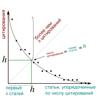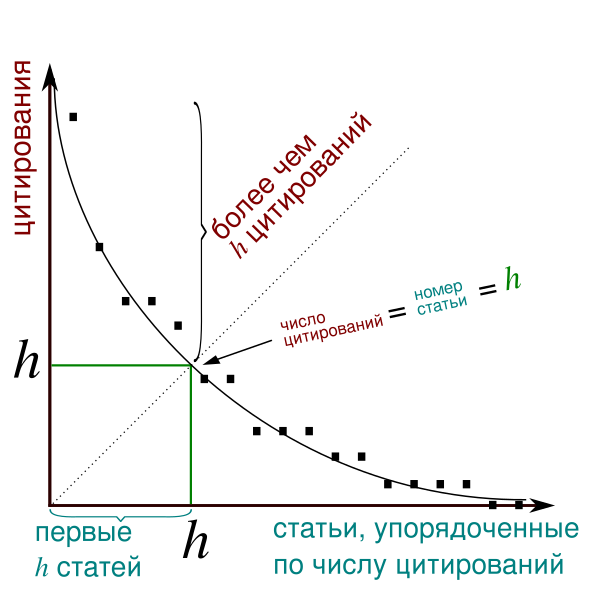 Учёный имеет индекс h, если h из его Np статей цитируются как минимум h раз каждая, в то время как оставшиеся (Np — h) статей цитируются не более чем h раз каждая.