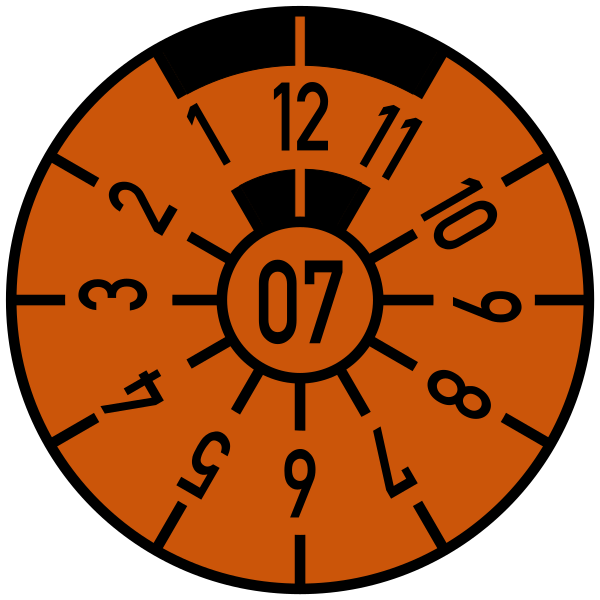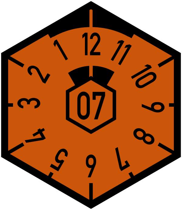 Стикер проверки на токсичность отработанных газов (AU) в виде отдельной шестиугольной наклейки на переднем номерном знаке был окончательно отменён с 1 января 2010 года[3]. Теперь используется только стикер основного технического осмотра (HU, стикер безопасности), который устанавливается на заднем номерном знаке и объединяет функции обеих проверок. В центре стикера указан год. Чёрные отметки рядом с цифрой 12 позволяют полицейским идентифицировать на расстоянии, когда был пройден тест. Данный стикер устанавливается на номерном знаке особым образом — он поворачивается. Если представить табло часов, то стикер поворачивается так, чтобы цифра 12 совпала с нужной цифрой на воображаемом циферблате. Цифры на мнимом циферблате означают числовой эквивалент месяцев.