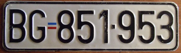 - Знаки для военной техники имеют одну букву, эмблему сербских вооруженных сил (идентичную сербскому щиту), а затем четыре цифры.