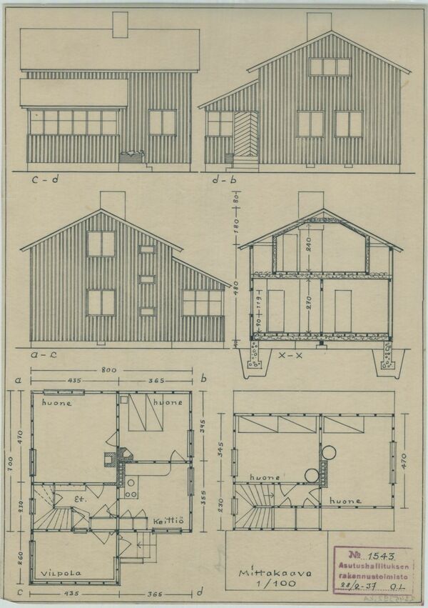 - Фронтальный и боковой фасады зданий (М1:50, 1:100);
