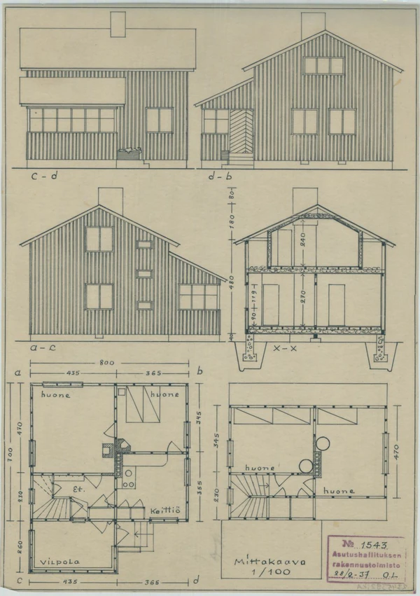 - Разрезы дома (характерные) (М1:100, 1:50);