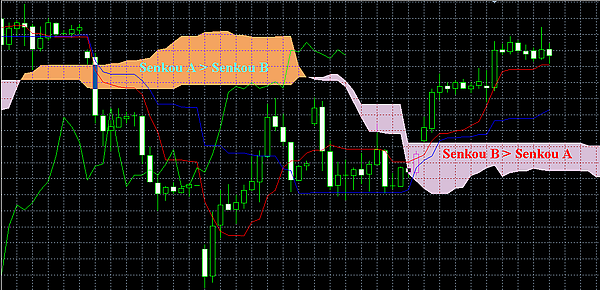 Kumo (яп. 雲 — облако) — промежуток между Senkou A и Senkou B, показывающий волатильность рынка.