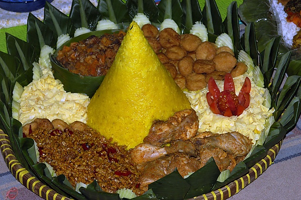 Особым рисовым блюдом, приготовляемым исключительно для семейных, общинных или религиозных церемоний, является тумпенг, представляющий собой коническую пирамидку из варёного клейкого риса, которая подаётся в окружении из лаук-паука различных видов. Часто рис для тумпенга варится в кокосовом молоке и окрашивается в ярко-жёлтый цвет с помощью куркумы или шафрана[54][55].