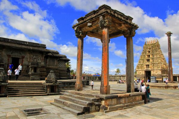 На входе в храмы можно видеть «дхваджа-стамбхи» — колонны-флагштоки, часто, с изображением лингама наверху.