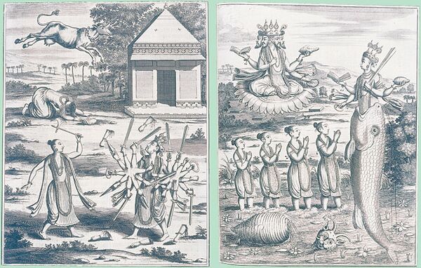 Индуизм имеет общие мифы и сюжеты с буддизмом (некоторые части жизни Будды), джайнизмом (история Ришабхи) и сикхизмом (соединением индуизма и ислама).