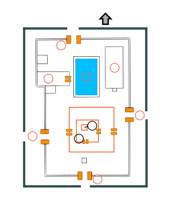 Пайсачика-падас, Мануша-падас и Девика-падас окружают Брахма-падас, который символизирует творческую энергию и служит местом для главного идола храма для даршаны. Наконец, в самом центре Брахма-падас находится Гарбхаграха (Гарбха — центр, граха — дом; буквально центр дома) (Пространство Пуруша), символизирующий Вселенский Принцип, присутствующий во всём и всех[4]. Шпиль индуистского храма, называемый шикхара в северной Индии и вимана в южной Индии, идеально выровнен над Брахма-пада(ми).