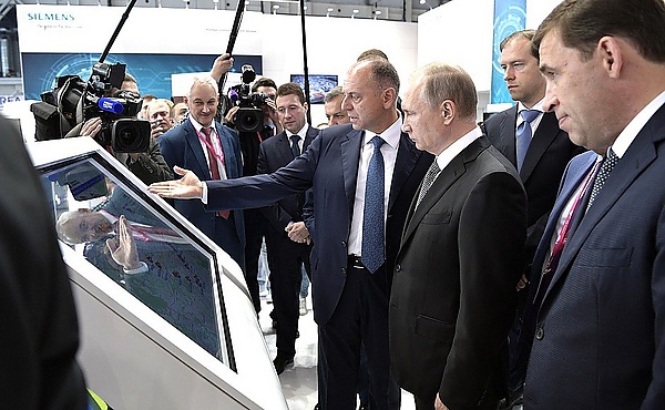 Главная стратегическая сессия: «Чемпионы цифровой гонки: стратегии конкуренции». В открытии принял участие Президент Российской Федерации Владимир Путин[31].