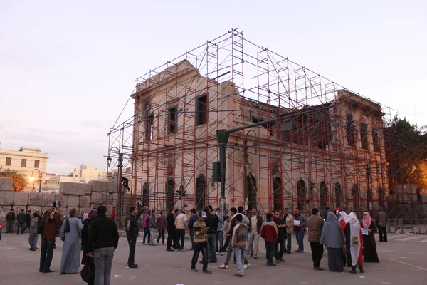 Институт располагал самой ценной коллекцией исторических книг Египта, в которую входили почти 200 000 томов, десятки тысяч карт, периодические издания двух веков, Атлас Верхнего и Нижнего Египта с 1752 года и первое издание 24-томного «Описания Египта», написанное французскими учёными.