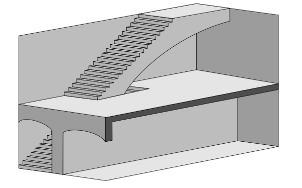 Лестничные марши в домах добротной постройки были по кирпичным сводам, со ступенями из травертина; более экономичным вариантом были бетонные ступени с наполнителем из обожжённого кирпича. В совсем дешёвых домах лестничные марши были деревянными.