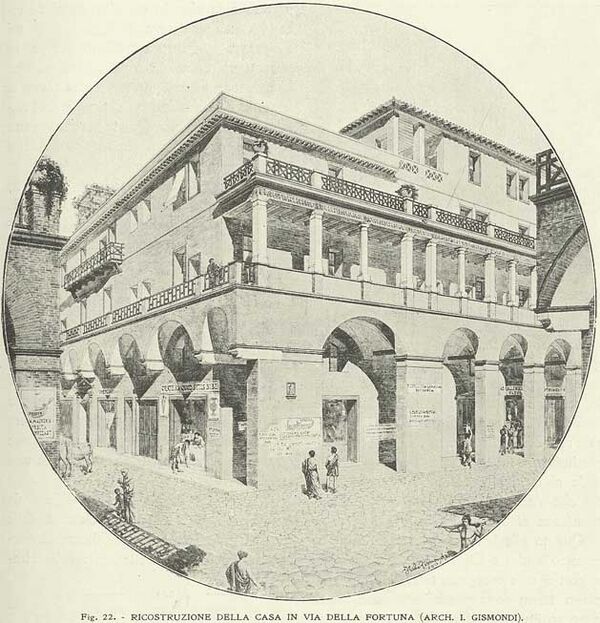 В XIX веке историки Ланчиани и Нибур считали, что римские районы у моста Сант-Анджело, римского гетто, в Регола могли быть похожи на античные плебейские районы, такие как Субура или Transtiberim, и их застройку[162][163]. Лишь после раскопок в Остии, когда были обнаружены многочисленные руины многоэтажных домов, появились первые исследования и реконструкции этих зданий, позднее и сравнения архитектурных особенностей Рима и Остии.