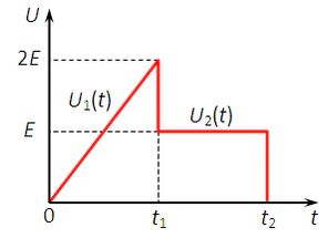 Для линейной цепи рис. 1 найдём ток через конденсатор под действием сложного входного сигнала, изображённого на рис. 3.