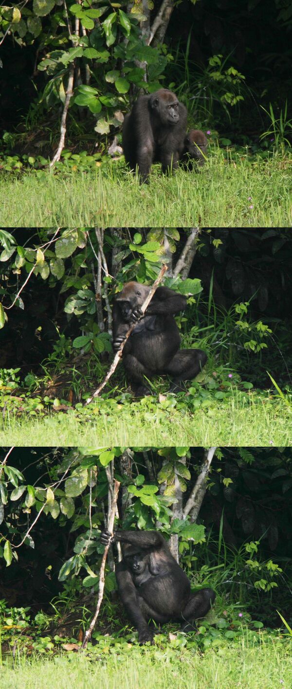 При помощи палок обезьяны (шимпанзе) извлекают труднодоступную пищу (термитов из термитника, съедобные корни из земли), охотятся[23][24] и даже измеряют глубину.[25] При помощи камней обезьяны раскалывают орехи (молодым обезьянам приходится долго этому учиться) и могут даже использовать несколько дополняющих друг друга инструментов.[26]
