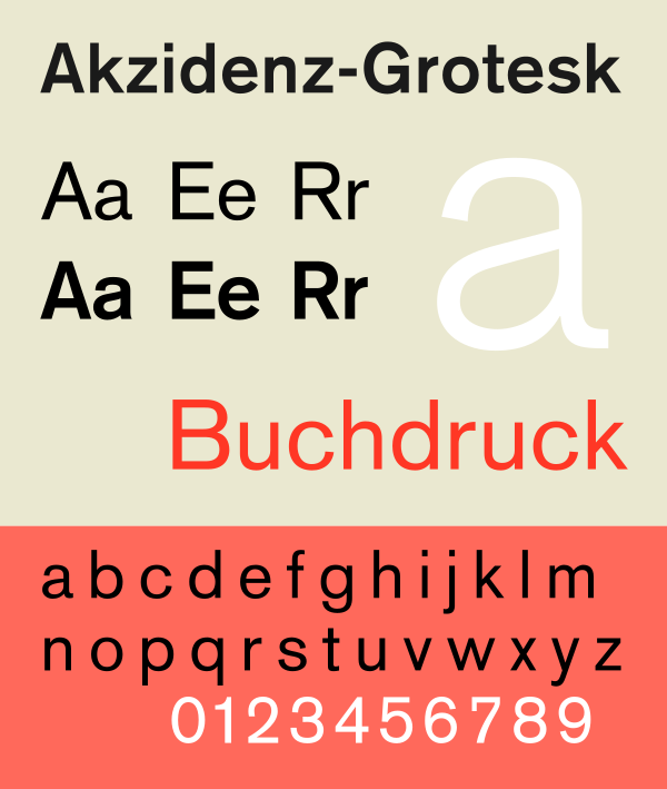 Одним из приемов Интернационального типографического стиля стало использование простых шрифтов — то есть, шрифтов подчеркнуто простых по своим очертаниям.[21] Предпочтение было отдано шрифтам без засечек, к которым, в частности, относится семейство гротесков. Простые шрифты использовались как антитеза антикве, широко распространенной во второй половине XIX века. Использование простых шрифтов без засечек стало одним из признаков нового дизайна.[12]