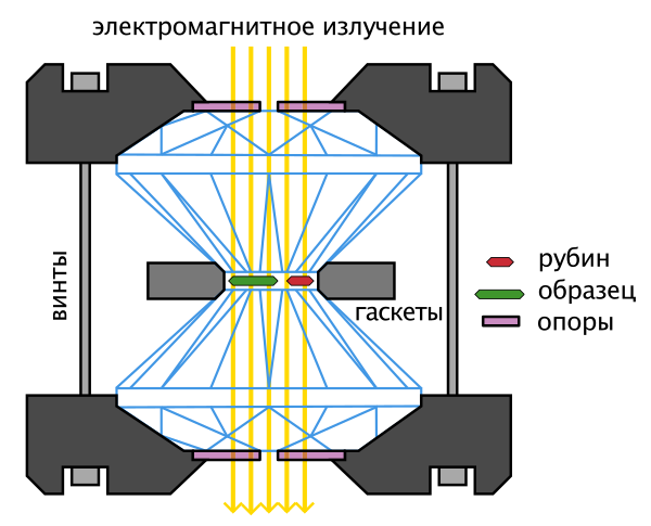 Для проведения спектроскопии НПВО инфракрасные спектрометры оборудуются специальной приставкой. В ней анализируемое вещество помещается в непосредственный контакт с кристаллом и фиксируется при помощи прижимного устройства. Далее через кристалл под специально подобранным углом подаётся инфракрасное излучение, интенсивность которого фиксируется на выходе из кристалла. Обычно в дисперсионных приборах осуществляется примерно 25 отражений, а в спектрометрах с преобразованием Фурье — около шести[31].