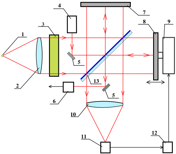 - в качестве внутреннего эталона длины волны используется гелий-неоновый лазер;