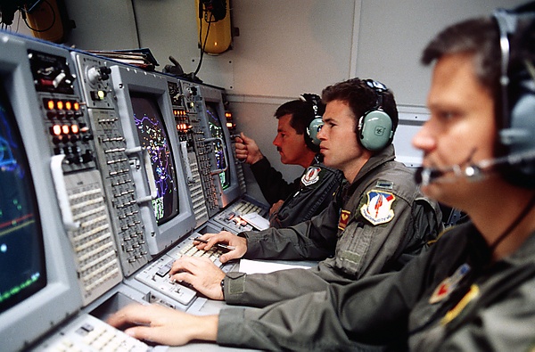 В 10:20 Уиксон сообщает о входе истребителей F-15 в воздушное пространство Северного Ирака оператору АВАКС Рики Уилсону, ответственного за воздушное движение внутри бесполётной зоны. Частота радиообмена для тактической зоны ответственности, которую использовали F-15, отличалась от частоты, используемой для связи пилотами «Чёрных ястребов». Однако Уилсон прослушивал обе частоты и сопровождал метки вертолётов на своём экране РЛС вплоть до их исчезновения в 10:12. Уилсон и другие члены экипажа АВАКС, многие из которых вели радиочастотный мониторинг, не информировали пилотов F-15 о нахождении в бесполётной зоне двух вертолётов Black Hawk[26]. В 10:21 Уилсон, полагая, что «Чёрные ястребы» снова приземлились, попросил Ванга выключить отображение символов «свой вертолёт» с экранов РЛС. Ванг сделал это. Находящийся на борту E-3 с целью содействия и контроля действий экипажа инструктор капитан Марк Кэти, в 10:00 ушёл в заднюю часть самолёта, чтобы вздремнуть[27][28].