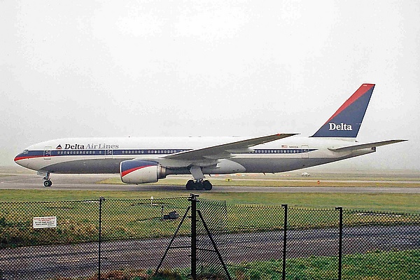 Boeing 777-232ER (регистрационный номер N860DA, заводской 29951, серийный 202) был выпущен в 1999 году (первый полёт совершил 4 марта). 23 марта того же года был передан авиакомпании Delta Air Lines. Оснащён двумя турбовентиляторными двигателями Rolls-Royce Trent 892[1][2].