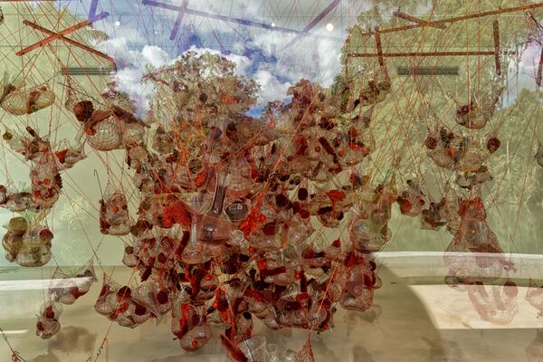 В 2008 году геодезический купол, спроектированный Паулой Засникофф Кардозо из бразильской архитектурной практики «Arquitetos Associados», был возведён в эвкалиптовом лесу и теперь под ним расположена инсталляция Мэтью Барни «De Lama Lâmina» (2004—2008), изображающая автомашину, выкорчевывающую дерево[11]. «Падающие лучи» Криса Бурдена (1984—2008) сделаны из 72 стальных балок, упавших с 45 метров с кранов[7] в яму, заполненную влажным цементом[6]. «Звуковой павильон» Дуга Эйткена был создан в 2009 году и состоит из круглого здания из матового стекла[7] на вершине холма, где также расположен колодец. Он спускается на глубину в 200 метров, и с его дна микрофоны передают звуки Земли, которые затем усиливаются и воспроизводятся в прямом эфире в галерее выше[11]. «Комната растительности» (2012) Кристины Иглесиас представляет собой куб из полированной нержавеющей стали, отражающий окружающий лес. Посетители проскальзывают в расщелины, где стены вылеплены листвой, входя в лабиринт внутри лабиринта; в центр куба периодически устремляются потоки воды[7].