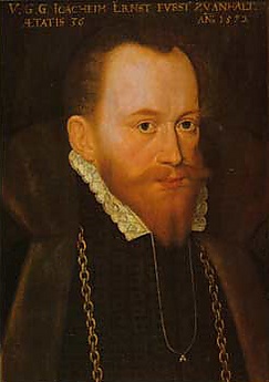 В 1570 году Иоахим Эрнст соединил в результате смерти родственников под своей властью все ангальтские земли. Иоахим, один из образованнейших людей своего времени, заменил римским правом местное, основал в 1582 году Gymnasium academicum в Цербсте, сильно поднял уровень горного дела, построил мост через Эльбу; свою столицу перевёл в город Дессау.