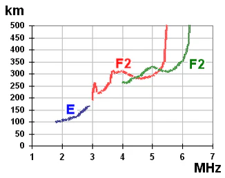 fxE, fxF1 и fxF2 — критические частоты ионизированных слоев E, F1, F2 для необыкновенного (eXtraordinary) компонента волны. fxE>foE, fxF1>foF1, fxF2>foF2);