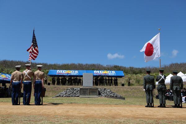 Эти слова написаны на обеих сторонах плиты — английский вариант обращён к морю, откуда наступали американские вооружённые силы, а японский обращён к острову, на котором защищали свои позиции японские войска.