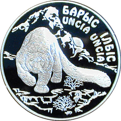 В 2000 году в серии «Памятные монеты Казахстана из серебра» тиражом 3000 штук была выпущена монета «Красная книга Казахстана: снежный барс» номиналом 500 тенге. На её реверсе на фоне стилизованной вершины скалистых гор расположено изображение снежного барса[41].