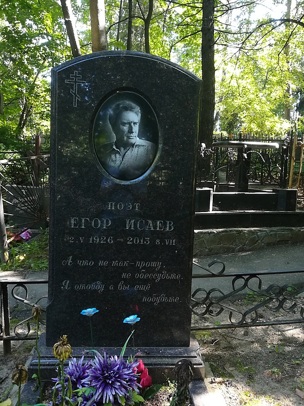 Егор Исаев — очень странный поэт. Влюбленные не декламируют его стихи друг другу, романтические особы не переписывают их в тетрадочки. На стихи Исаева не было песен, их не включали в школьные хрестоматии. При этом он, может быть, самый титулованный советский поэт, кавалер и лауреат. Огромные тиражи — и на языке оригинала, и в переводе на языки народов СССР — и стран социалистического содружества. Вероятно, все дело в том, что Егор Исаев был не поэтом, а символом советской поэзии. И, вероятно, сам прекрасно это понимал, потому что, как только советская власть закончилась, отошел от дел…