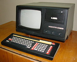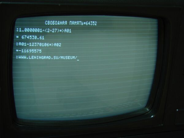 - Устройство отображения информации: встроено в процессорный блок — монохромный символьный ЭЛТ-монитор. Количество индицируемых символов: 256 (8 строк по 32 символа) или 1024 (16 строк по 64 символа). Матрица символа 5×7 точек. Размер экрана по диагонали: 31 см.