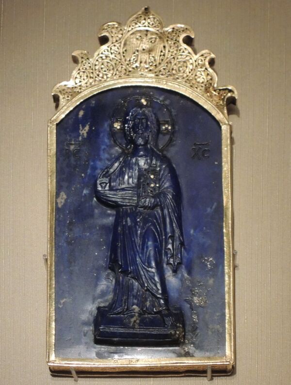 Христианская скульптура, распространённая на Западе, в восточной традиции представлена мало. Для религиозных целей ваяние с самого начала употреблялось умеренно, потому что восточная церковь всегда неблагосклонно смотрела на статуи, считая поклонение им в некотором роде идолопоклонством, и если до IX века круглые фигуры ещё были терпимы в византийских храмах, то постановлением Никейского собора 842 г. они были совсем устранены из них. Таким образом, главное поприще деятельности для скульптуры было закрыто, и ей оставалось исполнять только саркофаги, орнаментальные рельефы, небольшие диптихи, даримые императорами сановникам и церковным иерархам, переплёты для книг, сосуды и пр. Материалом для мелких поделок такого рода служила в большинстве случаев слоновая кость[5].