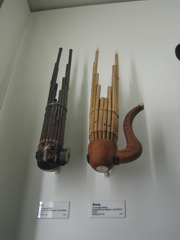 Китайцам издавна были известны ударные и духовые инструменты. Древнейшими музыкальными инструментами, найденными на территории Китая (VII—IV тыс. до н. э.) были свистульки, костяные дудочки. Известны шаровидные глиняные окарины, литофоны (цин), бронзовые колокола (чжун) и другие музыкальные инструменты.