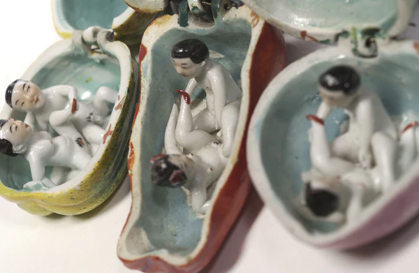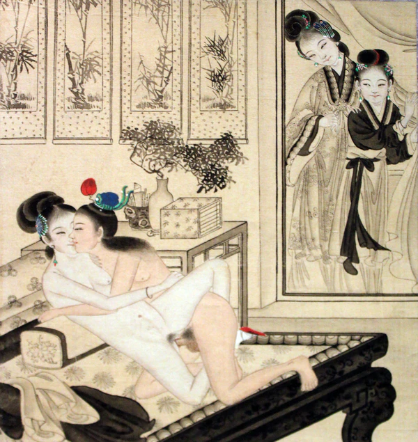 В эротических картинах, связанных с идеями даосизма, встречаются сцены, в которых мужчина одновременно с несколькими женщинами, что было связано с тем, что китайский мужчина мог иметь несколько жён и наложниц, при этом основной была лишь одна. Другие изображались в одежде и служили обрамлением сцен.
