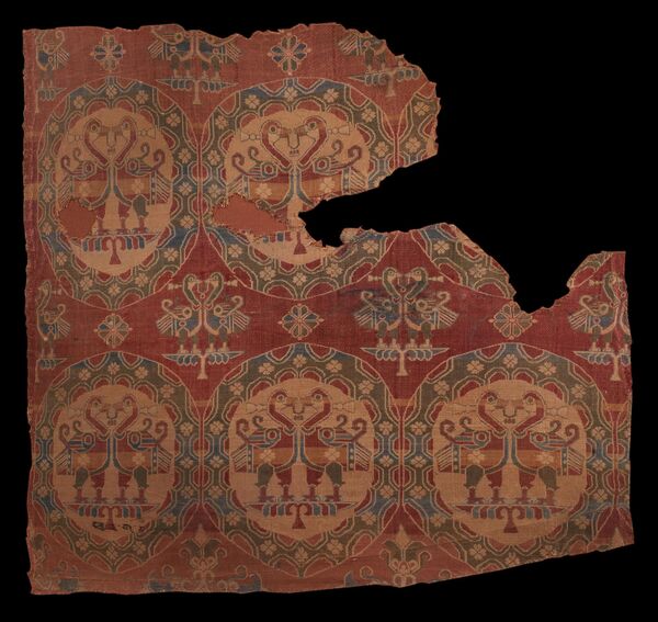 Ковры могли достигать высокого уровня сложности, о чём свидетельствуют похвалы, возданные мусульманскими завоевателями утраченному царскому ковру Хосрова I. Но единственные сохранившиеся фрагменты, которые могут происходить из Сасанидской Персии, — более скромные изделия, вероятно, сделанные кочевыми племенами. Сасанидский текстиль пользовался известностью, и до наших дней дошли фрагменты, в основном с рисунками, изображающими животных в отсеках[15].