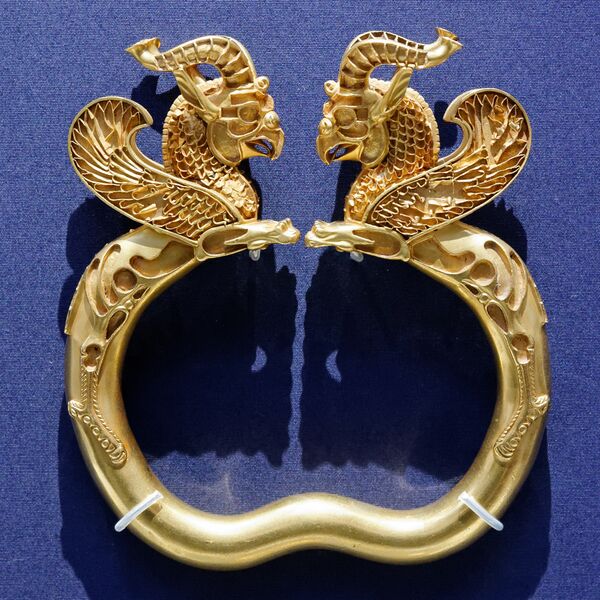 Сосуд для питья в форме рога, обычно заканчивающийся изображением животного, является наиболее распространённым типом крупных металлических изделий, сохранившихся до наших дней, как, например, образец в музее Метрополитен (см. 5-е фото в галерее). Существует ряд очень изящных мелких украшений или инкрустаций из драгоценных металлов, также в основном с изображением животных, и в Сокровищнице Окса представлен широкий выбор типов. Небольшие изделия, обычно из золота, пришивались к одежде представителей элиты, сохранилось несколько золотых гривн[5].